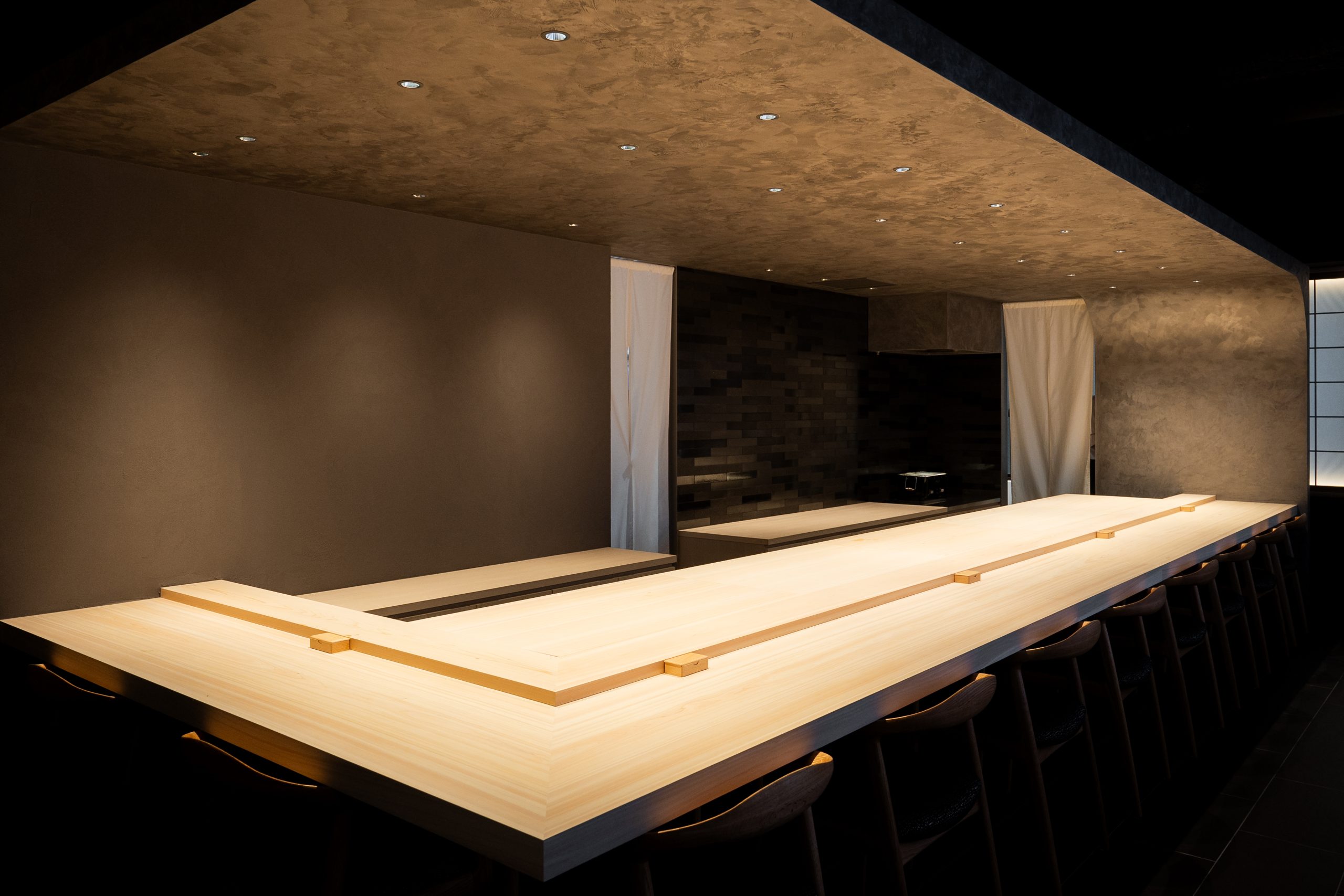 無垢のカウンターに、やわからな光。